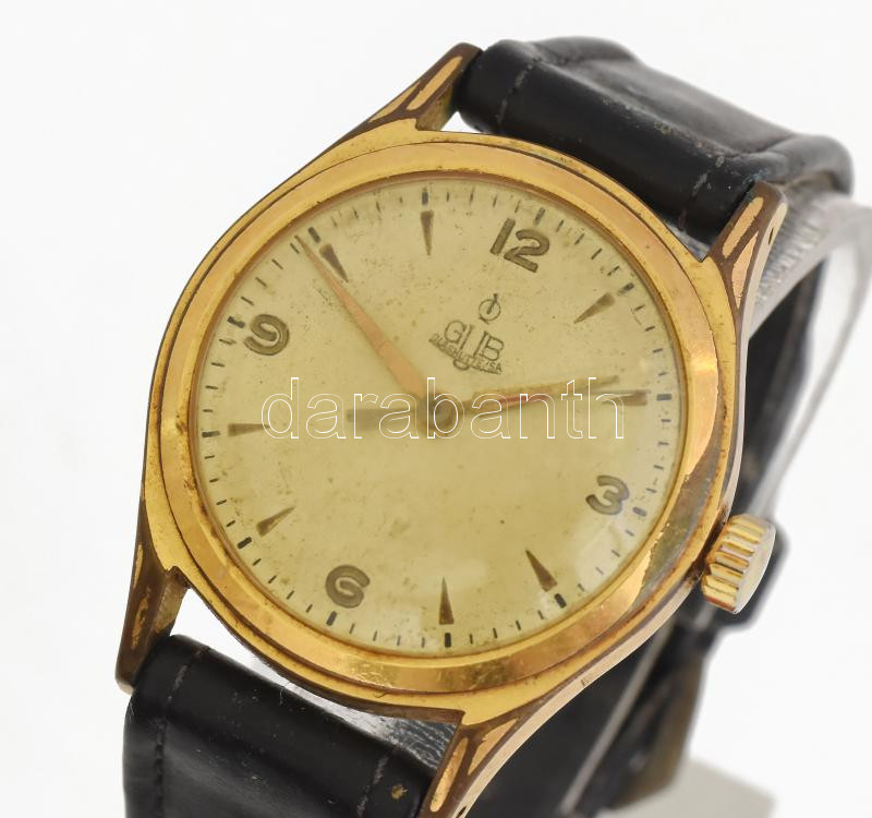 Leírás: GUB Glashütte karóra, mechanikus, szíjjal, karcokkal, működik, számlap d: 27 mm