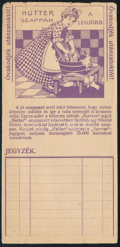 Hutter szappan számolócédula. https://www.darabanth.com/hu/475-Gyorsarveres/475.0/Mutargy-papirregiseg-egyeb/Reklam-2~1000017/Hutter-szappan-szamolocedula~II3192246