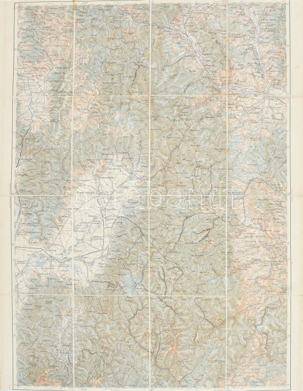 cca 1910 Kézdivásárhely és környékének katonai térképe, 1 : 200.000, K. u. k. Militärgeographisches Institut, vászonra kasírozva, körbevágva, 57,5x44,5 cm