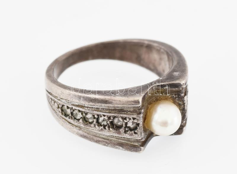 Leírás: Ezüst (Ag) gyűrű gyönggyel, jelzett, méret: 49, bruttó: 5,4 g