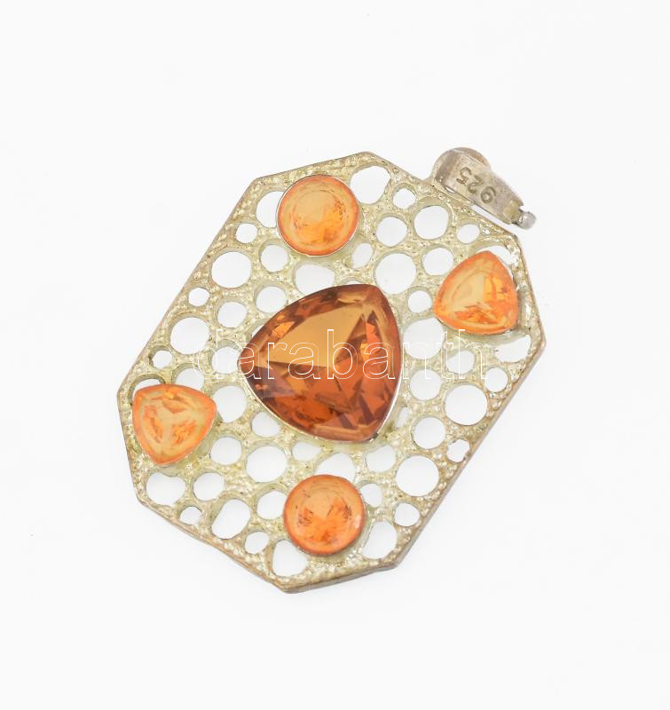 Leírás: Ezüst (Ag) medál borostyánszín kövekkel 14g, jelzett 4,5 cm