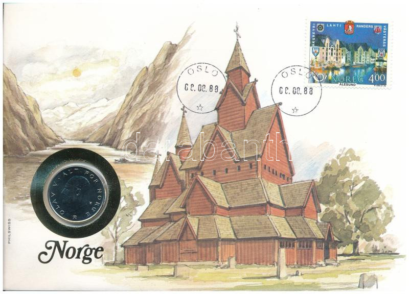 Norvégia 1988. 1K Cu-Ni felbélyegzett borítékban, bélyegzéssel, német nyelvű leírással T:UNC