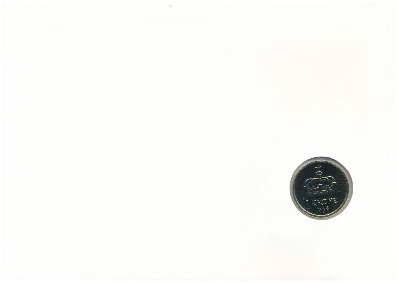 Norway 1988. 1 Krone Cu-Ni in envelope with stamp, cancellation and a prospectus in german C:UNC