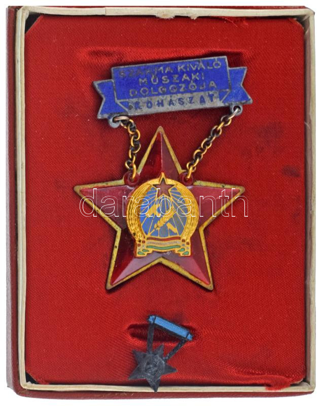 ~1950. "Szakma kiváló műszaki dolgozója - Kohászat" Rákosi-címeres zománcozott kitüntetés hátoldalán "10911" sorszámmal, miniatűrrel, eredeti tokban T:XF kopottas tok