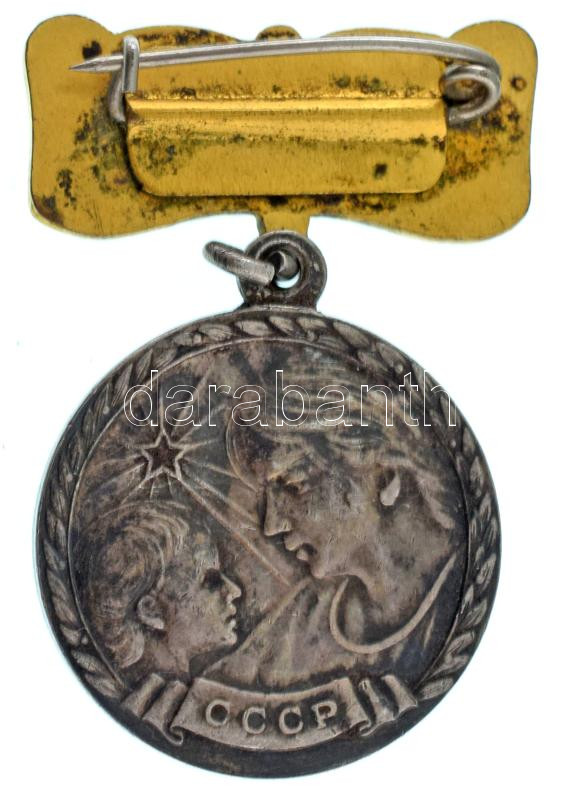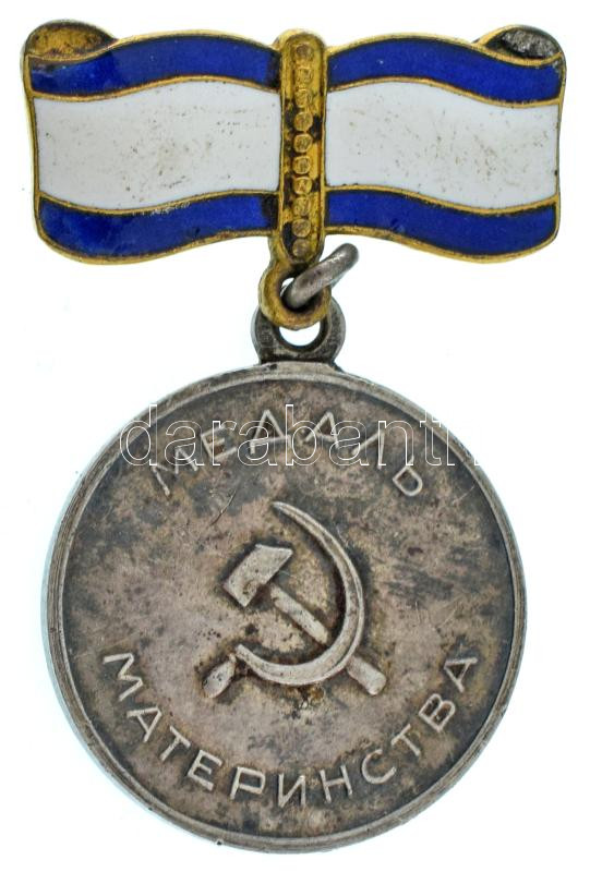 Szovjetúnió 1944. "Anyasági Érem II. osztálya" zománcozott Ag kitüntetés T:XF patina