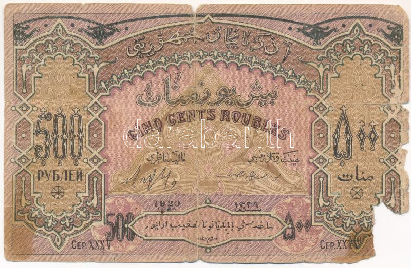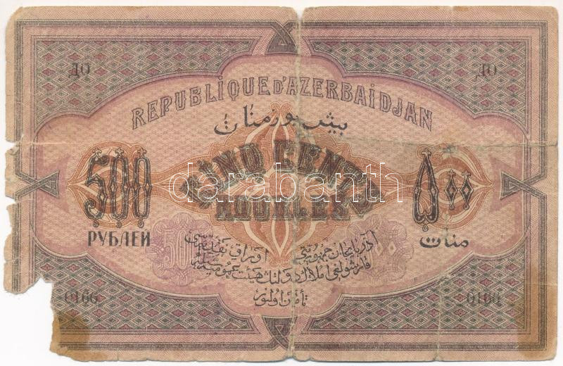 Azerbajdzsán / Autonóm Köztársaság 1920. 500R T:F Azerbaijan / Autonom... https://www.darabanth.com/hu/475-Gyorsarveres/475.0/Numizmatika/Kulfoldi-bankjegyek~2000016/Azerbajdzsan-Autonom-Koztarsasag-1920-500R-TF-Azerbaijan-Autonomous-Republic-1920-500-Ru~II3225117