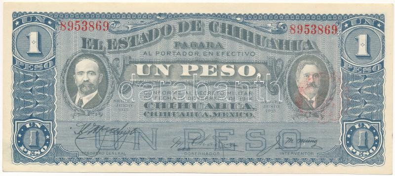 Mexikó / Forradalom / Chihuahua 1915. 1P hátoldalán piros felülbélyegzéssel T:AU