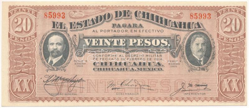 Mexico / Revolution / Chihuahua 1915. 20 Pesos "K" serie with black scalloped overprint on back C:AU
