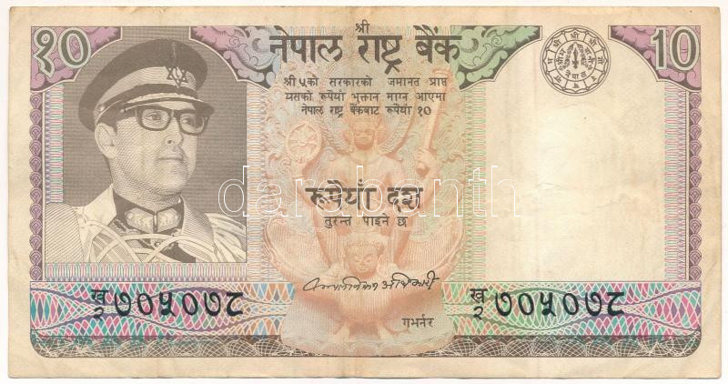 Nepal ND (1979-1984) 10 Rupees C:F ... https://www.darabanth.com/hu/475-Gyorsarveres/475.0/Numizmatika/Kulfoldi-bankjegyek~2000016/Nepal-DN-1979-1984-10R-TF-folt-Nepal-ND-1979-1984-10-Rupees-CF-spot-Krause-P2324b~II3212013
