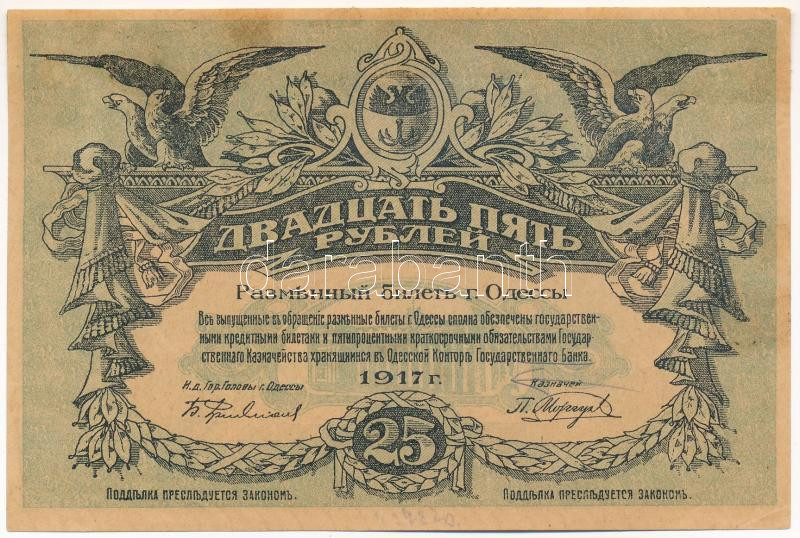 Orosz Polgárháború / Ukrajna és Krím / Odessza 1917. 25R vízjel nélkül T:F ragasztónyom