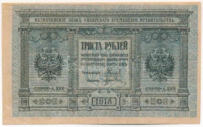 Oroszország / Polgárháború / Szibéria és Urál / Ideiglenes Szibériai Igazgatás 1918. 300R T:F Russia / Civil War / Siberia and Urals / Provisional Siberian Administration 1918. 300 Rubles C:F