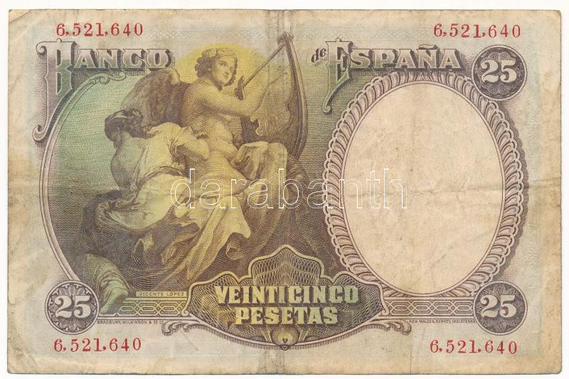 Kra... https://www.darabanth.com/hu/475-Gyorsarveres/475.0/Numizmatika/Kulfoldi-bankjegyek~2000016/Spanyolorszag-1931-25P-TF-folt-Spain-1931-25-Pesetas-CF-spot-Krause-P2381~II3209508