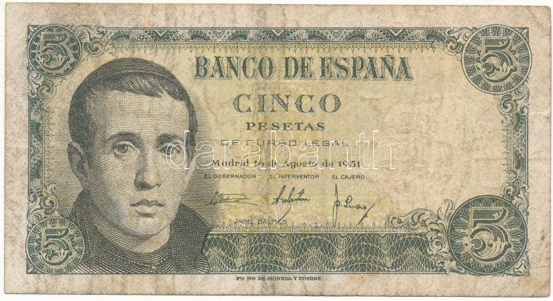 Kraus... https://www.darabanth.com/hu/475-Gyorsarveres/475.0/Numizmatika/Kulfoldi-bankjegyek~2000016/Spanyolorszag-1951-5P-TF-folt-Spain-1951-5-Pesetas-CF-spot-Krause-P23140a2~II3209544