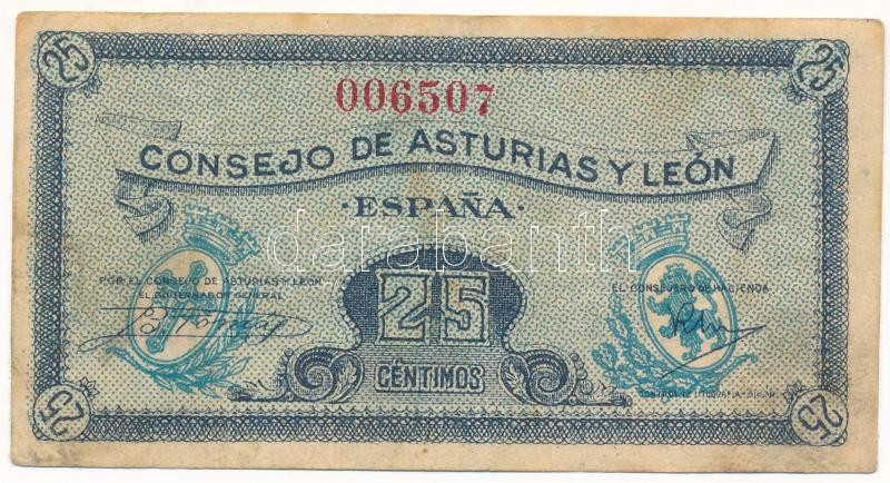 Spanyolország / Polgárháború / Asturia és León DN (1937) 25c T:F folt