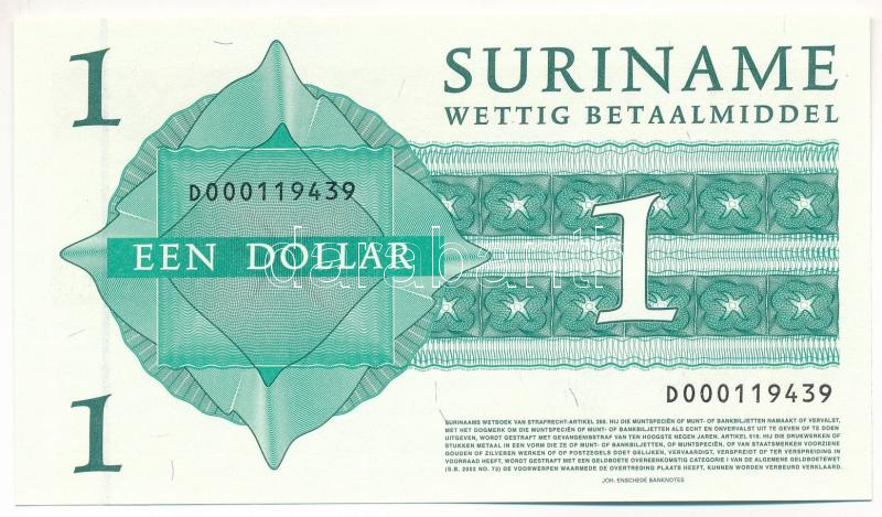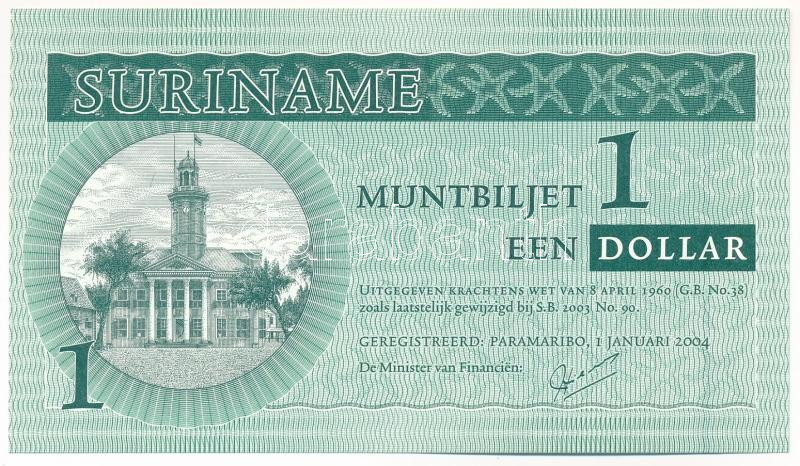 Krause P#155 https://www.darabanth.com/hu/475-Gyorsarveres/475.0/Numizmatika/Kulfoldi-bankjegyek~2000016/Suriname-2004-1USD-TUNC-Suriname-2004-1-Dollar-CUNC-Krause-P23155~II3210236