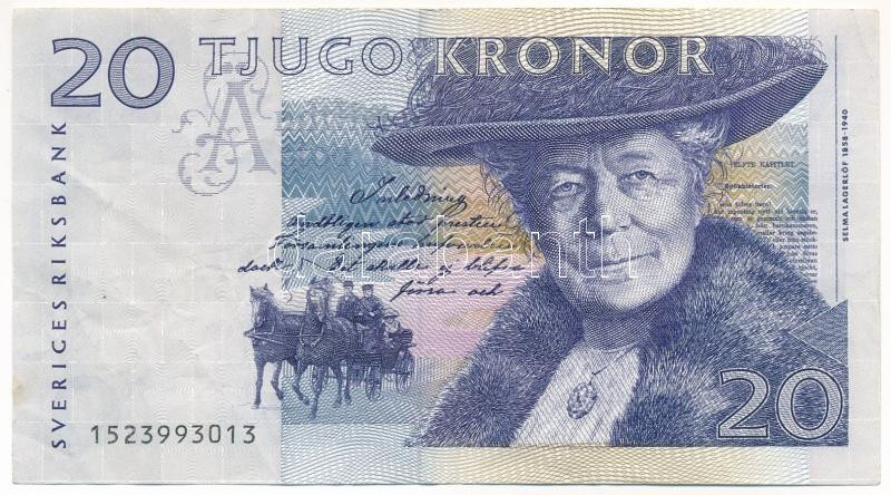Sweden 1991. 20 Kronor C:F small sp... https://www.darabanth.com/hu/475-Gyorsarveres/475.0/Numizmatika/Kulfoldi-bankjegyek~2000016/Svedorszag-1991-20K-TF-kis-folt-Sweden-1991-20-Kronor-CF-small-spot-Krause-P2361a~II3211175