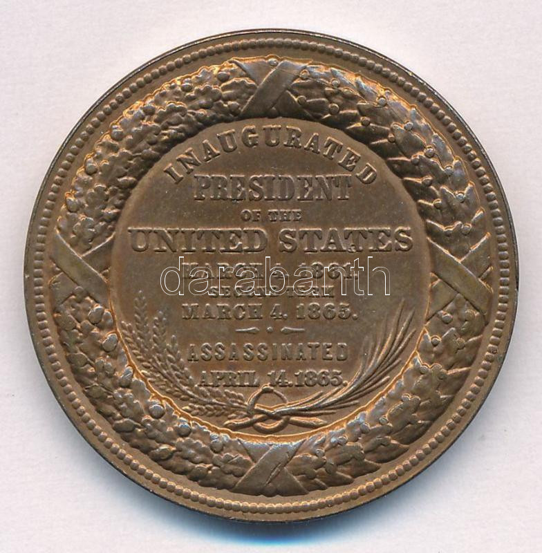 Amerikai Egyesült Államok DN "Abraham Lincoln" kétoldalas bronz emlékplakett hátoldalán "Inaugurated President of the United States" felirattal (33,5mm) T:AU