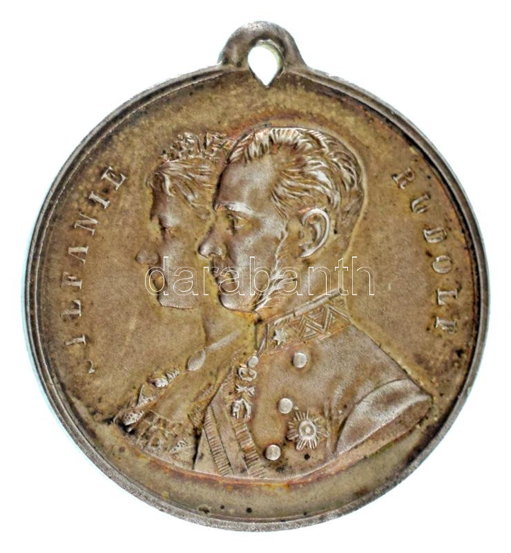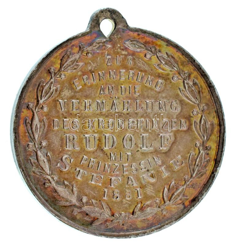Austria 1881. "Zur Erinnerung an die Vermahlung des Kronprinzen Rudolf mit Prinzessin Stefanie" double-sided silvered bronze medallion with ear C:XF edge error