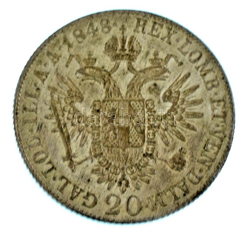 Ausztria 1848A 20kr Ag "I. Ferdinánd" T:AU patina Austria 18... https://www.darabanth.com/hu/475-Gyorsarveres/475.0/Numizmatika/Kulfoldi-fem-es-ezustpenzek~2000017/Ausztria-1848A-20kr-Ag-I-Ferdinand-TAU-patina-Austria-1848A-20-Kreuzer-Ag-Ferdinand-I-CAU-pa~II3228485
