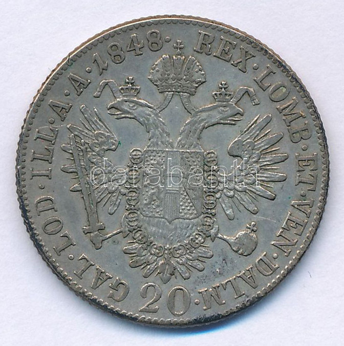 Au... https://www.darabanth.com/hu/475-Gyorsarveres/475.0/Numizmatika/Kulfoldi-fem-es-ezustpenzek~2000017/Ausztria-1848A-20kr-Ag-I-Ferdinand-TXF-patina-karc-Austria-1848A-20-Kreuzer-Ag-Ferdinand-I~II3135380