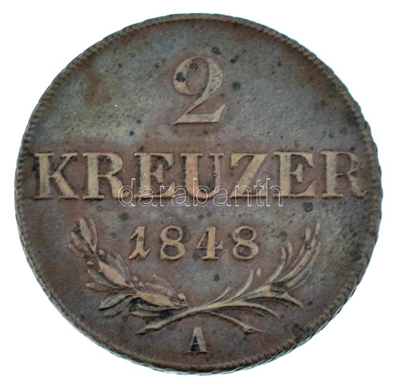 Krause ... https://www.darabanth.com/hu/475-Gyorsarveres/475.0/Numizmatika/Kulfoldi-fem-es-ezustpenzek~2000017/Ausztria-1848A-2kr-Cu-TXF-Austria-1848A-2-Kreuzer-Cu-CXF--Krause-KM232188~II3111230