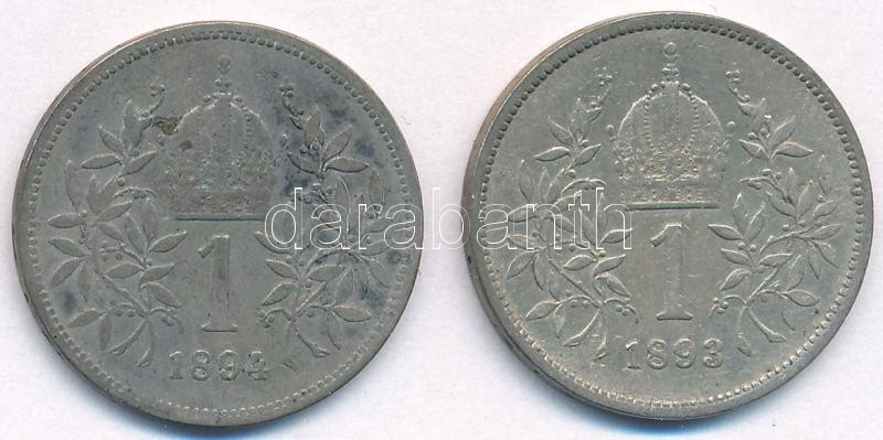 Leírás: Ausztria 1893-1894. 1K Ag "Ferenc József" (2xklf) T:VF patina