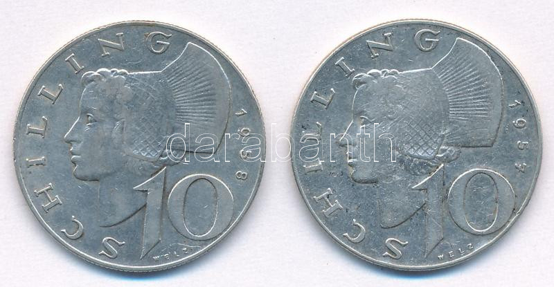 Austria 1957-1958. 10 S... https://www.darabanth.com/hu/475-Gyorsarveres/475.0/Numizmatika/Kulfoldi-fem-es-ezustpenzek~2000017/Ausztria-1957-1958-10Sch-Ag-2xklf-TXF-VF--Austria-1957-1958-10-Schilling-Ag-2xdiff-CXF-VF-~II3229504