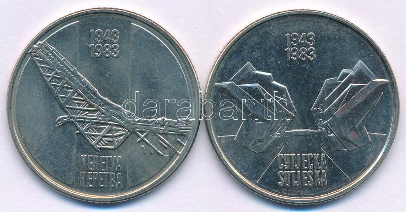 Leírás: Jugoszlávia 1983. 10D Ni-sárgaréz "Neretvai csata 40. évfordulója" + 10D Ni-sárgaréz "Sutjeskai csata 40. évfordulója" T:AU Yugoslavia 1983. 10 Dinara Ni-brass "40th Anniversary - Battle of Neretva River" + 10 Dinara Ni-brass "40th Anniversary - Battle of Sutjeska River" C:AU