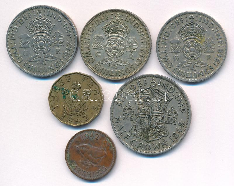 Leírás: Nagy-Britannia 1942-1948. 1f-1/2C (6xklf) közte 1942. 2Sh Ag "VI. György" T:XF,VF
