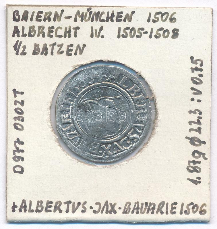 Leírás: Német Államok / Bajorország 1506 1/2b Ag "IV. Albert" (1,87g) T:XF German States / Bavaria 1506. 1/2 Batzen Ag "Albrecht IV" (1,87g) C:XF