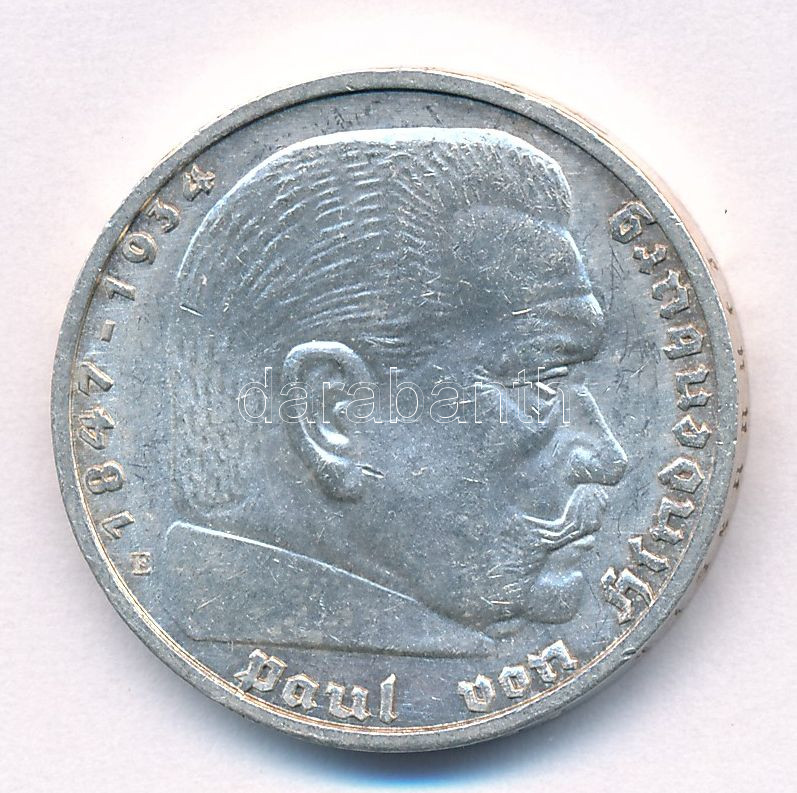 Német Harmadik Birodalom 1936E 5M Ag "Paul von Hindenburg" T:XF kis ph.