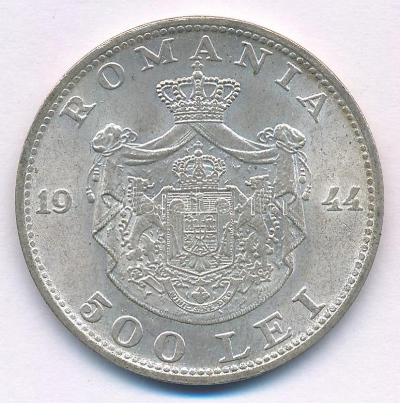 Romania 1944.... https://www.darabanth.com/hu/475-Gyorsarveres/475.0/Numizmatika/Kulfoldi-fem-es-ezustpenzek~2000017/Romania-1944-500L-Ag-I-Mihaly-TXF-patina-Romania-1944-500-Lei-Ag-Mihai-I-CXF-patina-Kra~II3185147