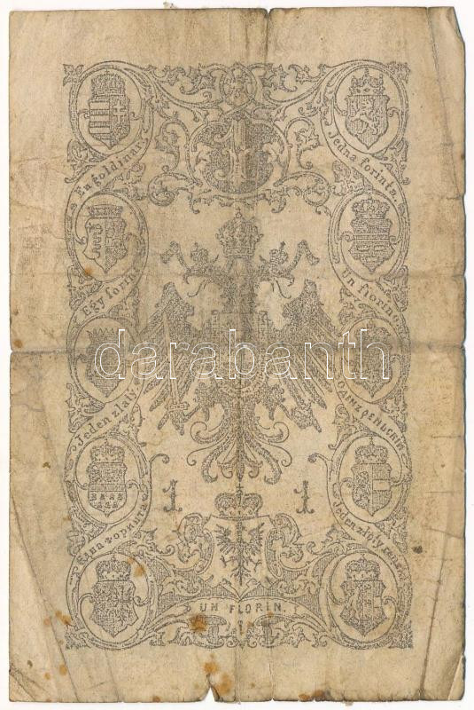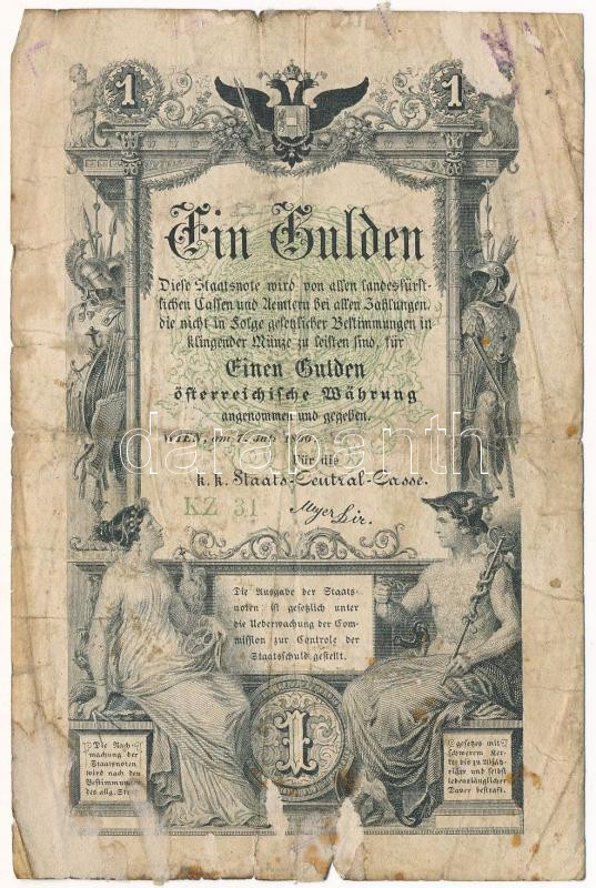 Leírás: 1866. 1G "STN" vízjeles papíron, "KZ31" sorszámmal T:VG,G restaurált Austrian Empire 1866. 1 Gulden on "STN" watermarked paper, "KZ31" serial C:VG,G restored Adamo G97