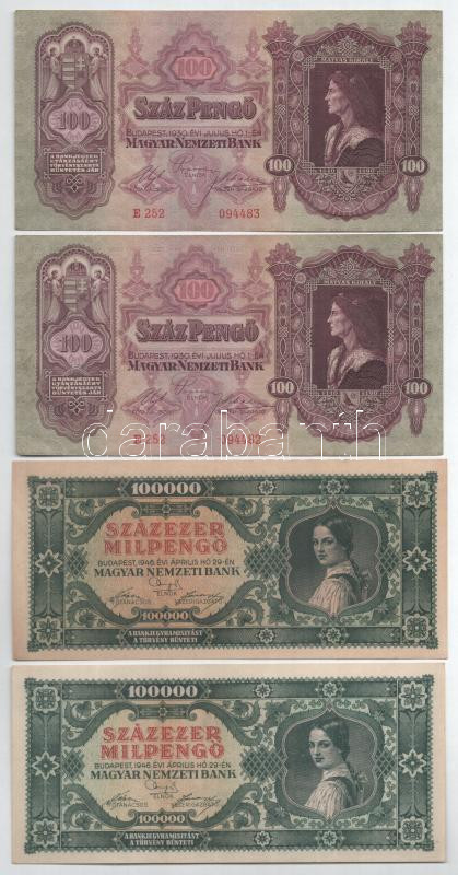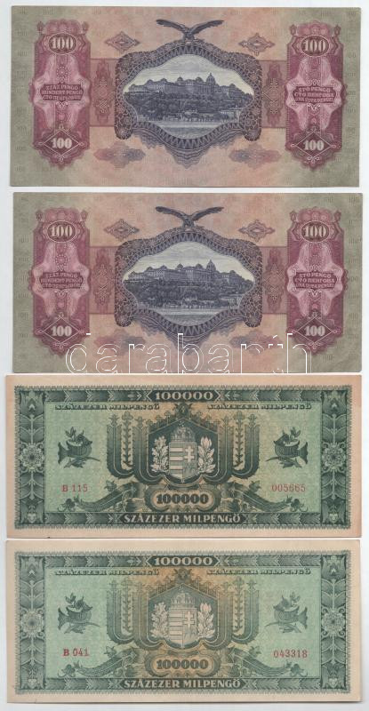 Leírás: 1930. 100P (2x) sorszámkövető + 1946. 100.000MP (2x) T:AU-F szép papír