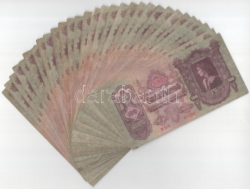 Leírás: 1930. 100P (30x) mind különféle sorozatszámmal "E 616 - E 707" között T:F,VG közte szép papír Adamo P17