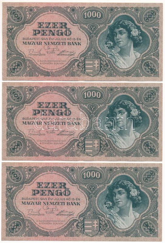 Leírás: 1945. 1000P (3x) sorszámkövetők (F190 057417 - F190 057419) T:XF