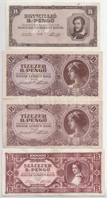 1946. 10.000BP (2x) + 100.000BP + 1.000.000BP T:AU-F https://www.darabanth.com/hu/475-Gyorsarveres/475.0/Numizmatika/Magyar-bankjegyek~2000009/1946-10000BP-2x-plus-100000BP-plus-1000000BP-TAU-F~II3222363