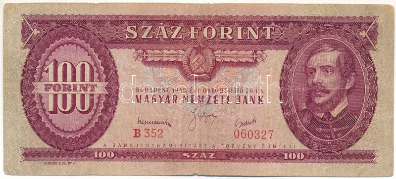 Leírás: 1949. 100Ft "B 352 060327" T:F