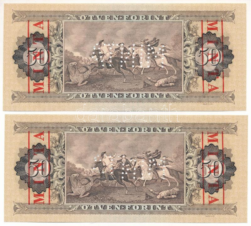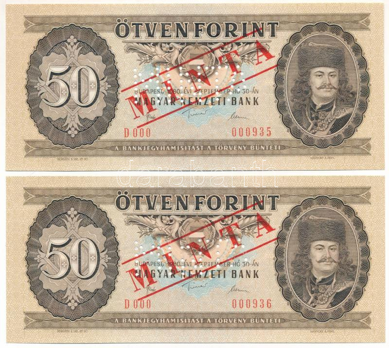 Hungary 1980. 50 Forint with "MINTA (SPECIMEN)" overprint and perforation (2x), sequential serials "D000 000935 - D000 000936" serial numbers C:UNC,AU