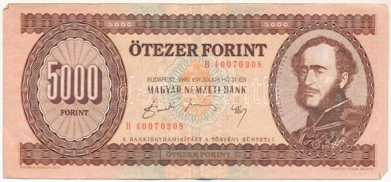 Leírás: 1990. 5000Ft "H 40070308" T:F folt