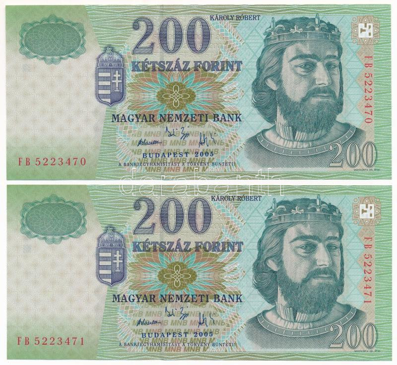 Leírás: 2005. 200Ft 2x sorszámkövetők "FB 5223470 - FB 5223471" T:UNC