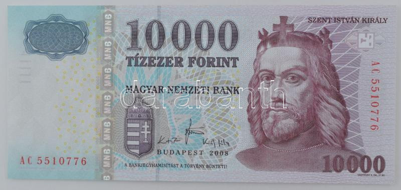 2008. 10.000Ft "AC 5510776" T:UNC https://www.darabanth.com/hu/475-Gyorsarveres/475.0/Numizmatika/Magyar-bankjegyek~2000009/2008-10000Ft-AC-5510776-TUNC~II3231624