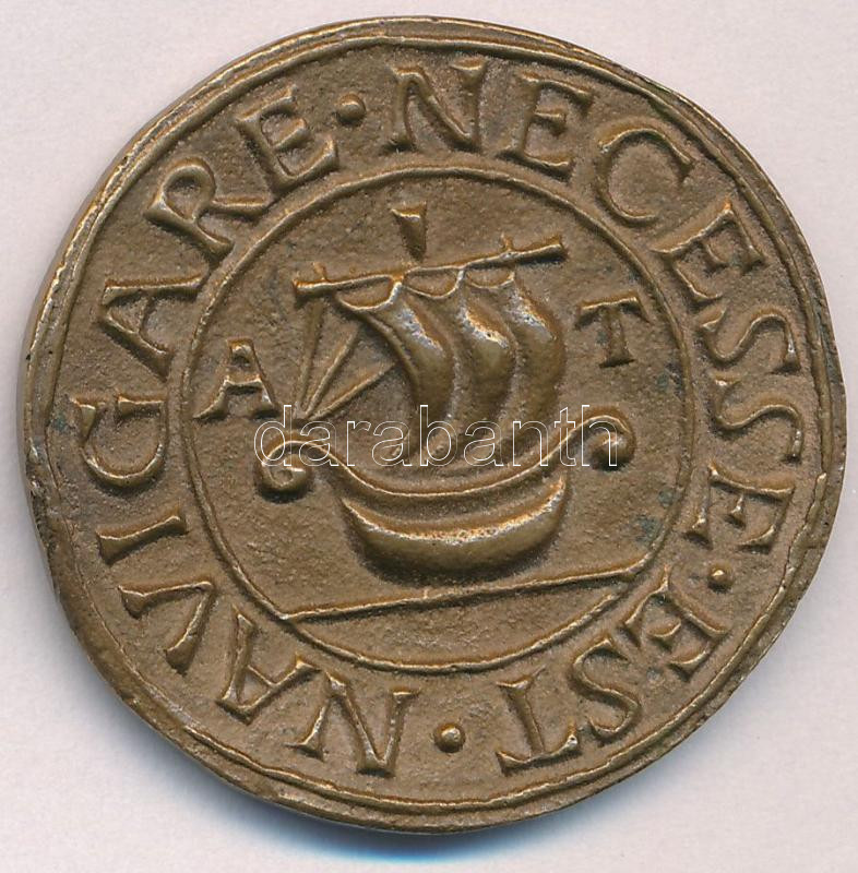 Leírás: Asszonyi Tamás (1942-) DN "NAVIGARE NECESSE EST" bronz névjegyérem (~36-37mm) T:AU,XF
