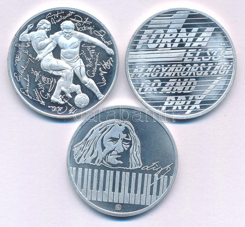 Bognár György (1944-) 1986. "Labdarúgó Világbajnokság Mexikó" Al emlékérem (32mm) + Fülöp Zoltán (1951-) 1986. "Hungaroring - Forma 1 Első Magyarországi Grand Prix" Al emlékérem (32mm) + 1986. "175 éve született Doborjánban Liszt Ferenc - 100 éve nyugszik a Bayreuthi temetőben" Al emlékérem (32mm) T:AU (PP) ujjlenyomat