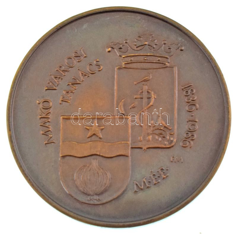 Leírás: Fritz Mihály (1947-) 1986. "150 éves a Makói Városi Tanács épülete" kétoldalas bronz emlékérem (42mm) T:AU kis karc