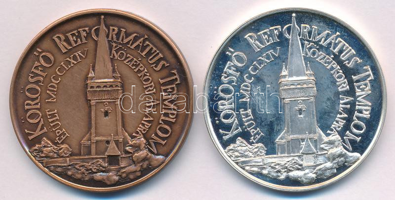 Kiss Sándor (1925-1999) 1988. "MÉE Budapest / Erdélyért - Körösfő Református Templom" bronz és peremen jelzett Ag emlékérem pár (35,64g/0.835/42,5mm) T:UNC,AU (eredetileg PP)