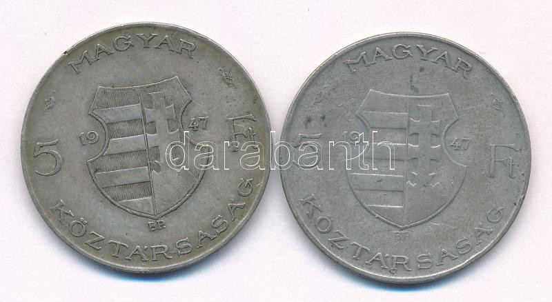 Leírás: 1947. 5Ft Ag "Kossuth" (2x) T:F patina Adamo F8.1