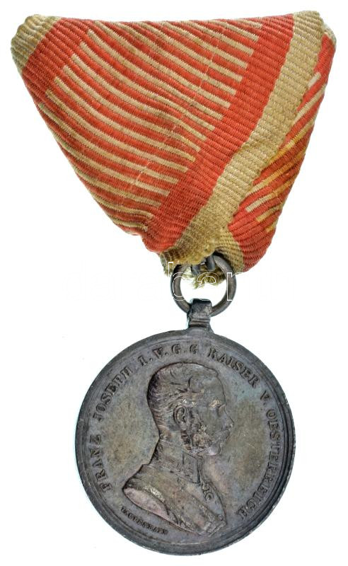 1914. "Ferenc József II. osztályú Ezüst Vitézségi Érem" peremen jelzett Ag kitüntetés eredeti mellszalaggal. Szign.: Tautenhayn T:XF Hungary 1914. "Silver Gallantry Medal, IInd Class" Ag decoration with hallmark on the edge, with original ribbon. Sign.: Tautenhayn C:XF NMK 133.