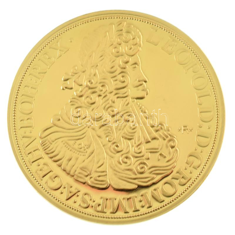 Leírás: DN "Magyarok Kincstára - I. Lipót, 5 dukát" aranyozott rézötvözet utánveret tanúsítvánnyal, kapszulában (38mm) T:PP