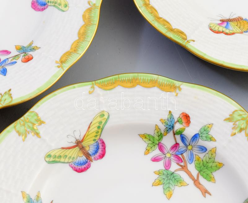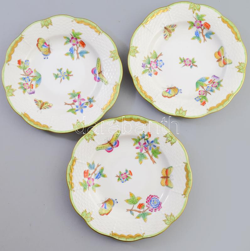 Herendi 3 darab Viktória mintás szendvicses tál. Jelzett, d: 16,5 cm https://www.darabanth.com/hu/475-Gyorsarveres/475.0/Porcelan-keramia-uveg/Porcelan~500007/Herendi-3-darab-Viktoria-mintas-szendvicses-tal-Jelzett-d-16-5-cm~II3228502